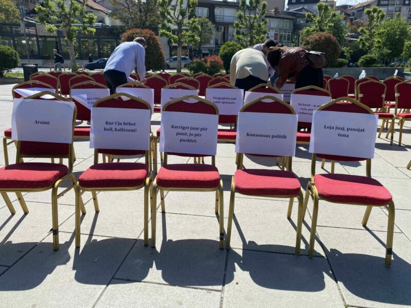 Disa nga mesazhet e vendosura në karriget simbolike ishin: “120 rroga, 0 përgjegjësi”, “Deri kur?”, “Cirku i demokracisë”, “Ky nuk është serial – është shteti ynë”, “Për çka ju kemi zgjedhur?”./EO/