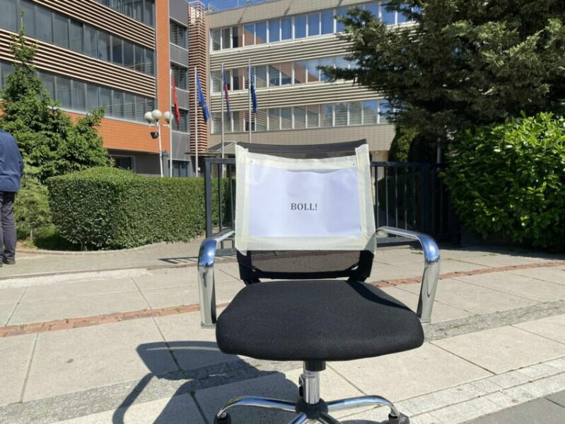 Para hyrjes së Kuvendit janë vendosur ulëse që simbolizonin sallën plenare, ndërsa mbi to ishin vendosur pankarta me mesazhe që, sipas organizatorëve, pasqyrojnë papërgjegjësinë e deputetëve.