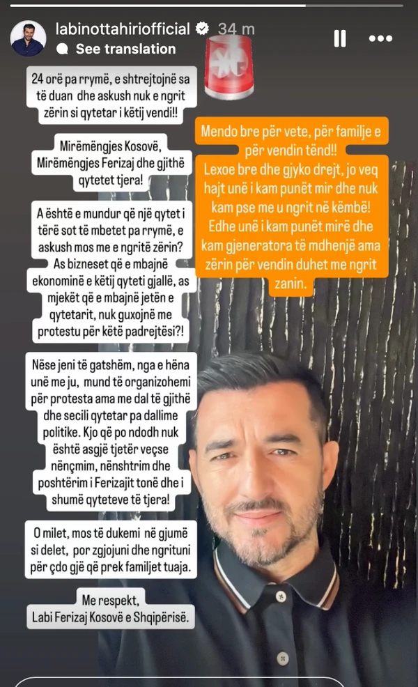 Ndërprerjet e energjisë elektrike që kanë prekur qytete të ndryshme të Kosovës kanë sjellë reagime të forta nga qytetarët, përfshirë edhe këngëtarin dhe deputetin e njohur, Labinot Tahiri – Labi.