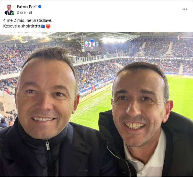 Edhe kryetari i Komunës së Mitrovicës së Jugut, Faton Peci ishte i pranishëm në stadiumin në Bratisllavë, për ta përcjellur nga afër këtë ndeshje.