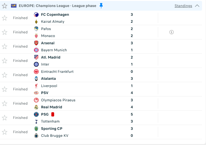 Befasia ishte humbja 1:4 e Liverpoolit në shtëpi ndaj PSV, kurse ndeshja që prodhoi më së shumti gola, ishte fitorja 5:3 e PSG-së ndaj Tottenhamit.