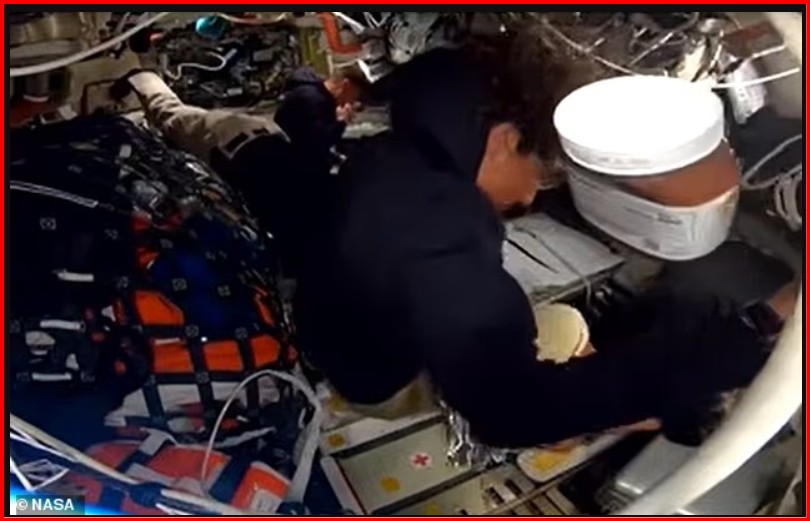 Për mëngjes, ekipi konsumon salsiçe, granola me boronica ose sallatë frutash tropikale. Për drekë dhe darkë, ata kanë kuiche me perime, brisket BBQ, fasule të nxehta, brokoli au gratin dhe makarona me djathë, së bashku me 58 tortilla të ngarkuara për udhëtimin.