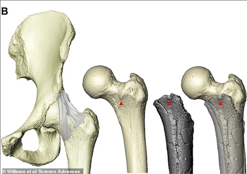 Në studimin e ri, shkencëtarët identifikuan praninë e një strukture të quajtur tuberkuli femoral – një element kyç për ecjen vertikale. Ky është vendi ku lidhet ligamenti më i madh dhe më i fuqishëm në trupin e njeriut, ligamenti iliofemoral, i cili lidh legenin me femurin dhe pengon trupin të përkulet tepër mbrapa gjatë qëndrimit në këmbë dhe ecjes.