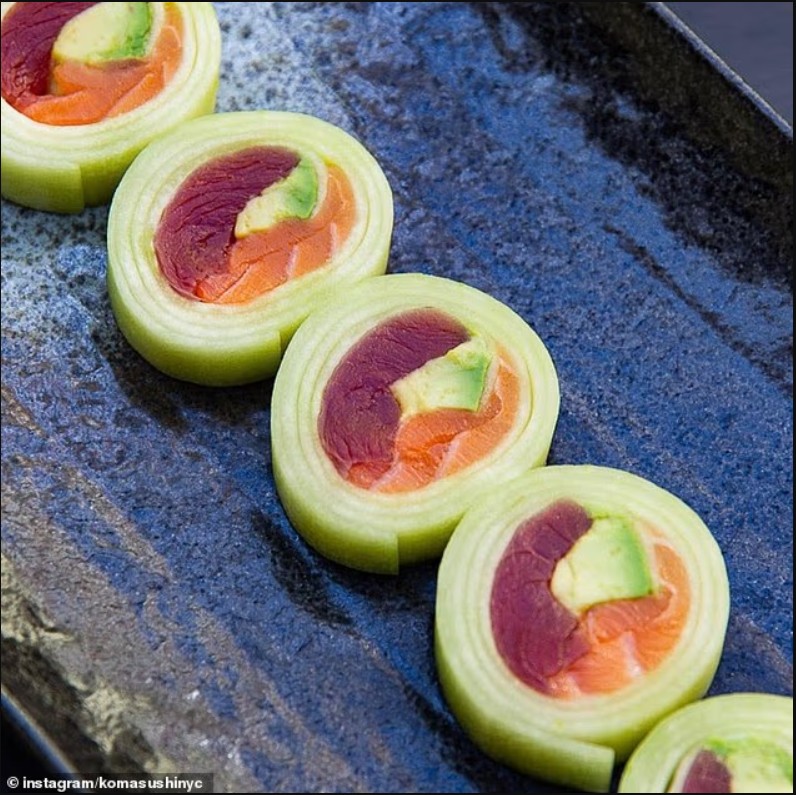 Në këtë variant, peshku i freskët mbështillet me feta kastraveci, pa oriz. Është zgjedhje ideale për ata që ndjekin dietë me pak karbohidrate ose duan të mbajnë nën kontroll sheqerin në gjak. Tuni është i pasur me omega-3, selen dhe vitaminë B6, të rëndësishme për energjinë dhe funksionin qelizor.