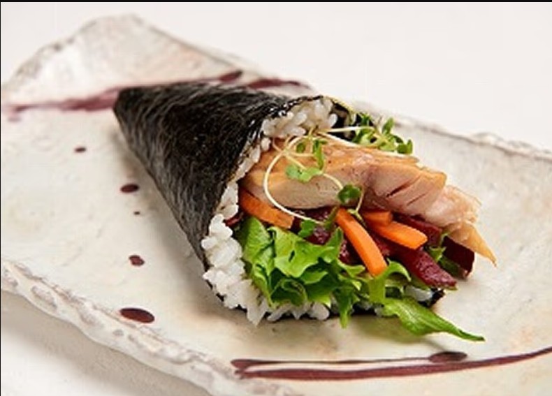 Sipas ekspertëve, kjo është një nga zgjedhjet më të fuqishme ushqyese në menu. Skumbria është jashtëzakonisht e pasur me omega-3, që ndihmojnë në uljen e kolesterolit dhe përmirësimin e shëndetit të zemrës. Algat nori, megjithëse konsumohen në sasi të vogla, ofrojnë hekur, zink dhe vitaminë C.