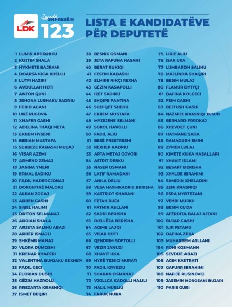Kryetari i LIdhjes Demokratike të Kosovës (LDK), Lumir Abdixhiku, ka publikuar listën e kandidatëve për deputetë.