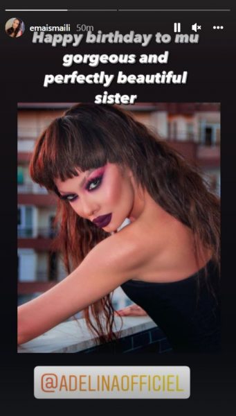 Ndërsa, Ema Ismaili, motra tjetër e Adelinës ka publikuar në rrjetin social “Instagram” një fotografi të këngëtares duke shkruar: “Urime ditëlindjen për motrën time të mrekullueshme dhe tepër të bukur”.