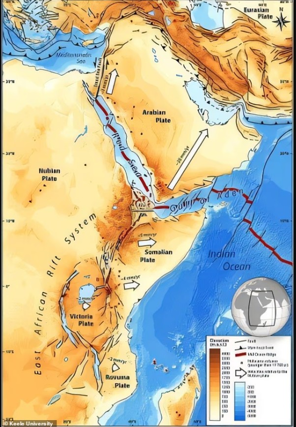 Analiza e të dhënave magnetike të mbledhura në vitet 1968-1969 nga instrumente ajrore tregoi shenja të zgjerimit të fundme të oqeanit midis Afrikës dhe Arabisë. Sinjalet magnetike tregojnë se kontinenti po shtrihet dhe hollon ngadalë, derisa të shpërthejë, duke shënuar lindjen e një oqeani të ri.