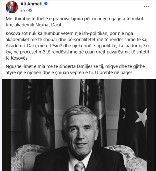 Kosova sot nuk ka humbur vetëm një ish-politikan, por një nga akademikët më të shquar dhe personalitetet më të rëndësishme të saj. Akademik Daci, me urtësinë dhe pjekurinë e tij politike, ka luajtur një rol kyç në proceset më të rëndësishme që çuan drejt pavarësimit të shtetit të Kosovës.