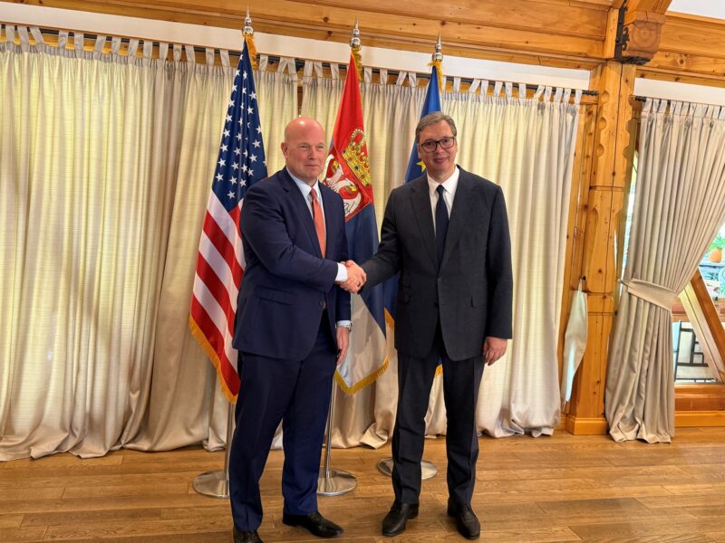 Ambasada amerikane në Beograd ka njoftuar për takimin e ambasadorit të SHBA’së në NATO, Matthew Whitaker, me presidentin e Serbisë, Aleksandar Vuçiq, gjatë vizitës së tij në Serbi.