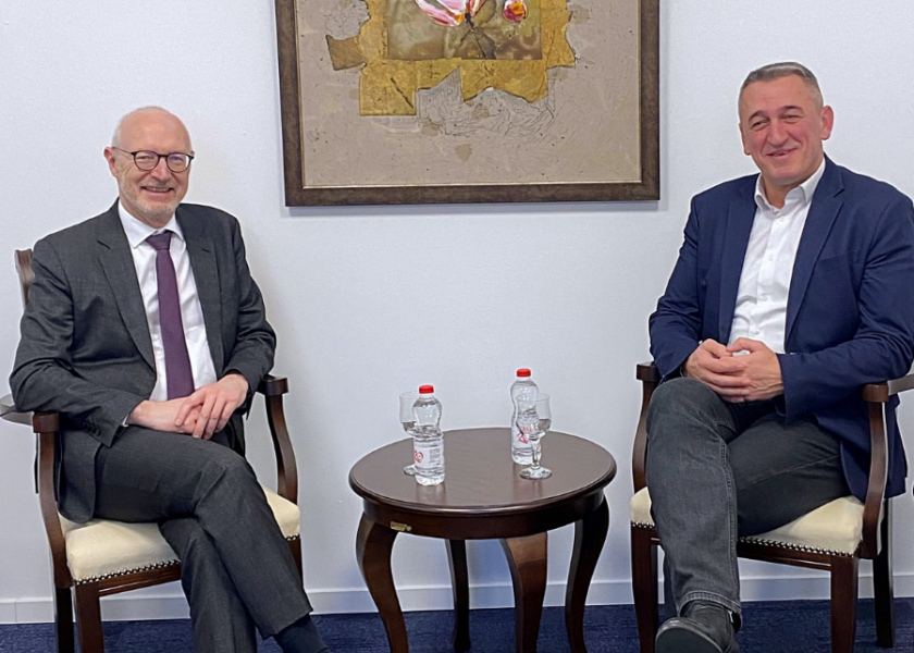 Ambasadori francez në Kosovë, Olivier Guerot, ka vizituar sot Ministrinë për Komunitete dhe Kthim, ku është takuar me ministrin Nenad Rashiq.