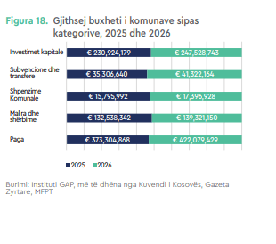 Instituti GAP ka publikuar analizën mbi projektbuxhetin komunal për vitin 2026, ku parashihet rritje e shpenzimeve në të gjitha kategoritë kryesore krahasuar me vitin 2025. Megjithatë, raporti nënvizon se shpërndarja e investimeve nga niveli qendror vazhdon të shoqërohet me dallime të konsiderueshme mes komunave.