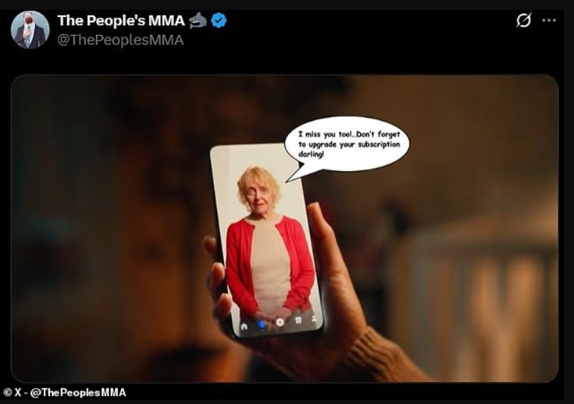 Reklama e kontestueshme tregon një grua shtatzënë duke folur me një rikrijim AI të nënës së saj të vdekur përmes aplikacionit të quajtur 2wai. Videoja më pas tregon “gjyshen” që i lexon përralla foshnjës, bisedon me fëmijën pasi kthehet nga shkolla dhe diskuton për lindjen e fëmijës së saj.