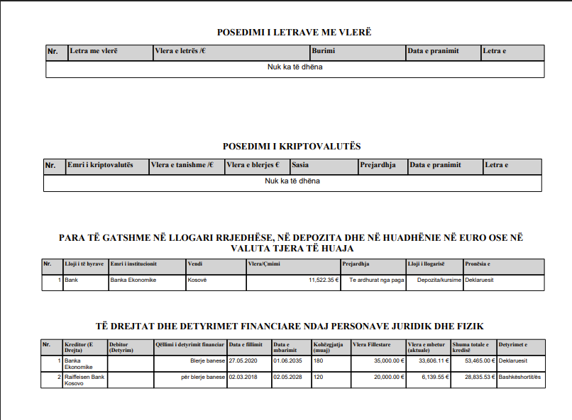 Kjo agjenci, më 17.04.2026, ka nisur publikimin e formularëve të deklarimit të pasurisë për zyrtarët të cilët mbajnë pozita publike.