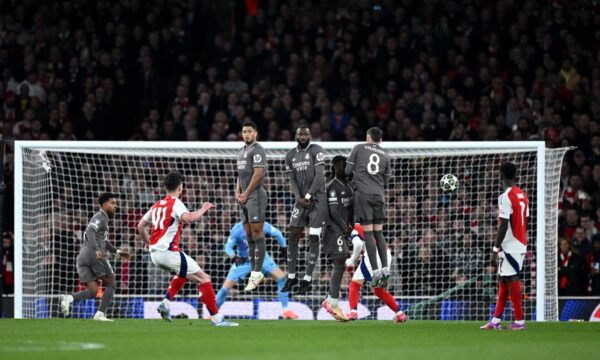 Ishte minuta e 58-të, kur Arsenali fitoi një goditje dënimi afër zonës, me Declan Rice që shënoi një gol të bukur nga goditja e dënimit për 1-0. Topi mori një trajektore të fortë rreth “murit të gjallë” për ta mposhtur Courtoisin.