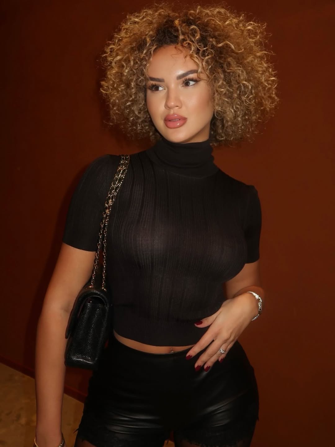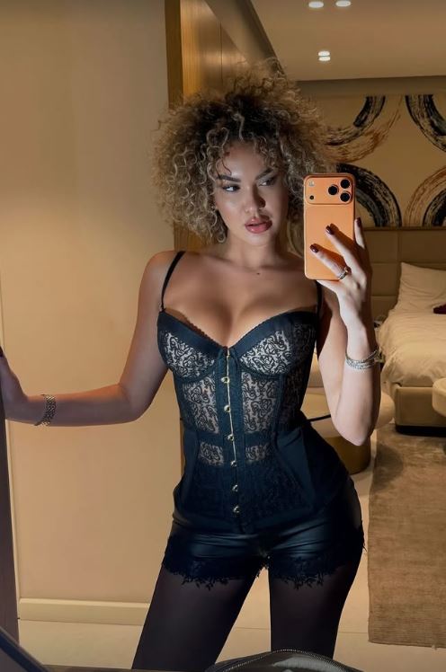 Në foton e fundit, Arta shfaqet e veshur me një bust korse të zi dhe pantallona të shkurtra prej materiali që i ngjan lëkurës, duke nxjerrë në pah linjat e saj të përsosura dhe stilin e saj të veçantë.