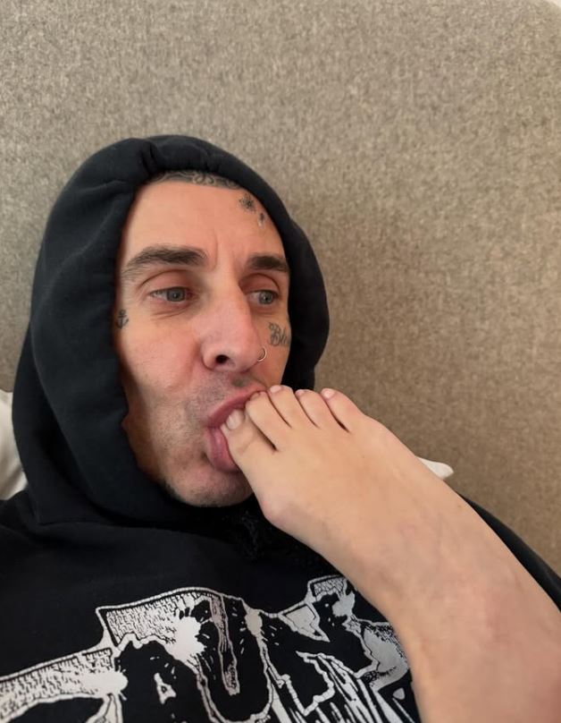 Në mesin e shumë fotografive, ai ka publikuar edhe një të tillë ku shihet duke ia duke ia lëpirë gishtërinjtë e këmbës asaj.