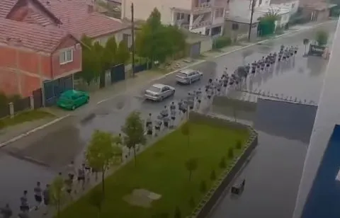 Ushtarët e rinj të FSK-së në Mitrovicë po vazhdojnë stërvitjet e tyre edhe nën reshjet e shiut, duke treguar se asgjë nuk i ndal në rrugën drejt disiplinës ushtarake.