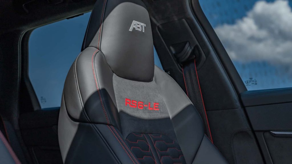 Timoni i kompanisë ka një mbulesë Alcantara. Logoja RS6-LE është në mbështetëset e sediljeve dhe mbulesat e dyshemesë.