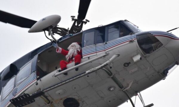 Babagjyshi dhe super-heronjtë e preferuar nga filmat vizatimorë zbritën me litar nga një helikopter dhe shpërndanë dhurata për fëmijët e shtruar në Klinikën Universitare për Sëmundjet e Fëmijëve.