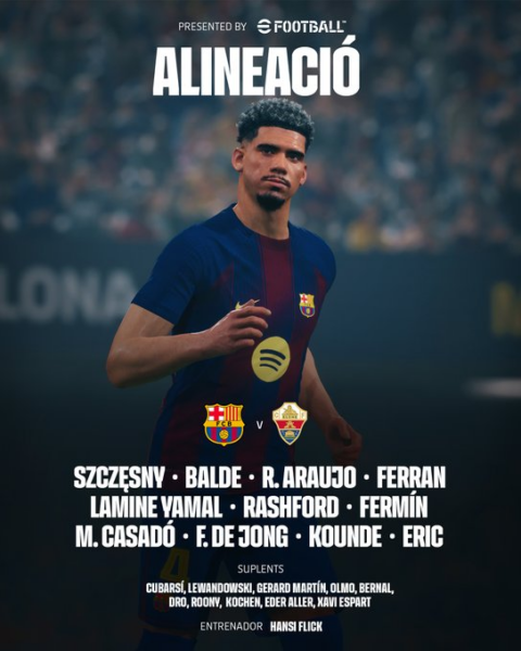 Janë publikuar formacionet zyrtare të ndeshjes mes Barcelonës dhe Elches, e vlefshme për javën e 11-të në La Liga.