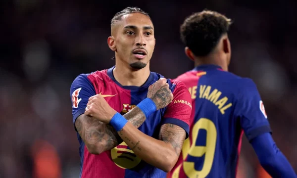Frenkie de Jong shënoi që në minutën e tretë, ndërsa Ferran Torres në minutën e tetë. Raphinha shënoi golin e tretë në minutën e 14-të.
