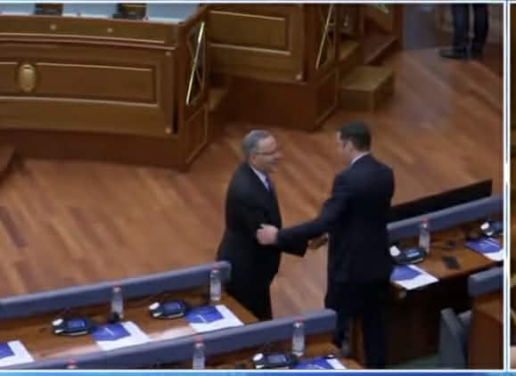 Hamza, para se të vendosej tek vendi i tij, ka përshëndetur kreun e LDK-së, Lumir Abdixhiku, deputetët Hykmete Bajrami, Ukë Rugova e Avdullah Hoti.