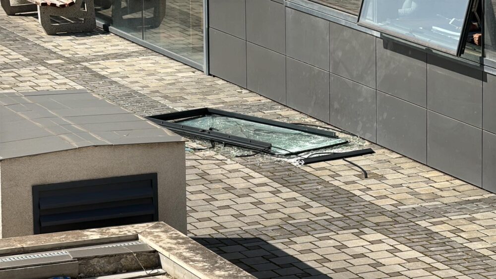 Gazetari i T7 Çlirimtar Morina raporton nga vendi i ngjarjes, aty ku një dritare e atij objekti ka rënë.
