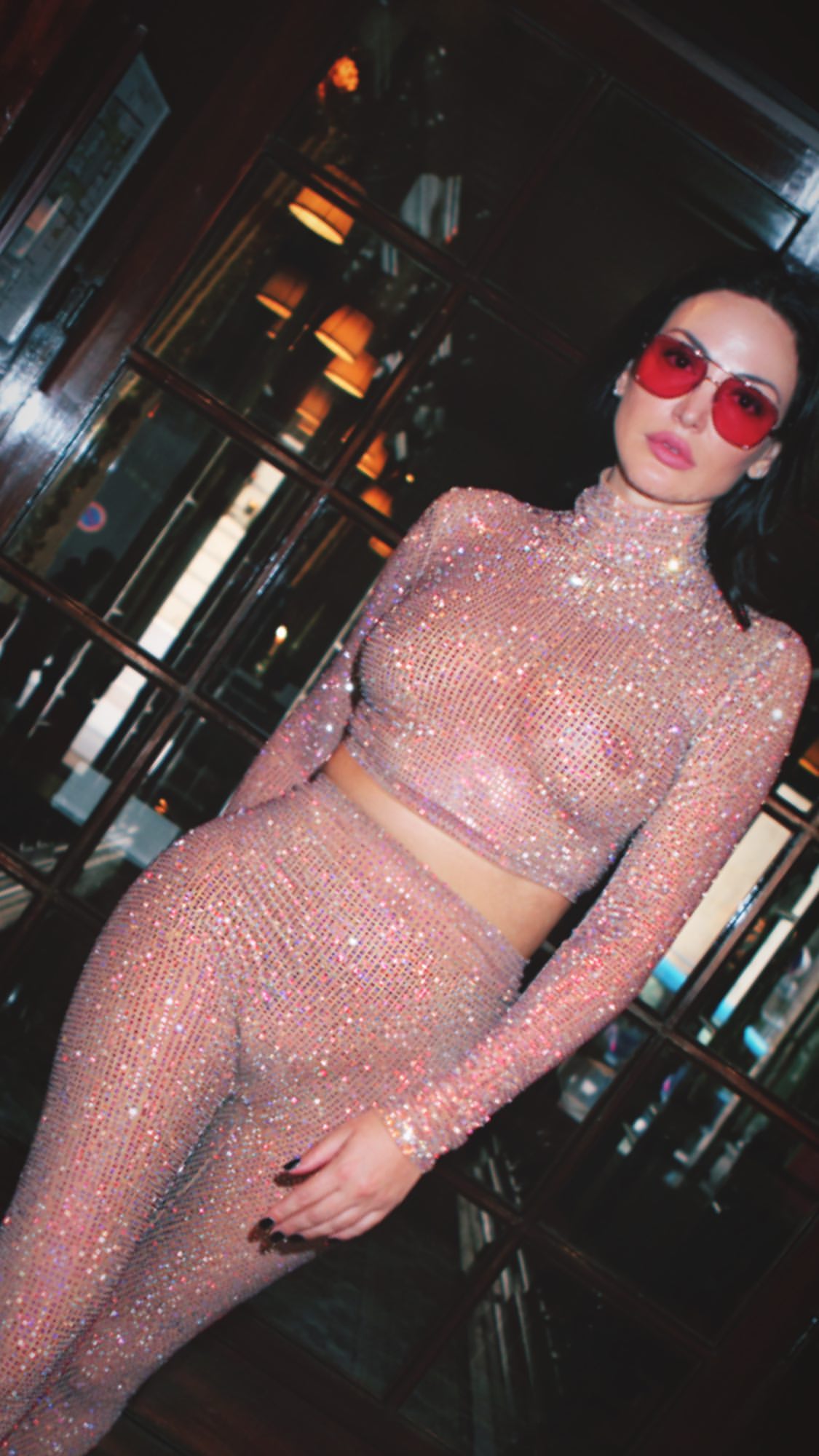 Bleona në këto foto shfaqet pothuajse tërësisht nudo me një veshje transparente.
