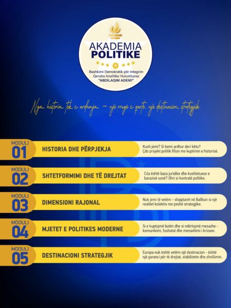 Afati për aplikim në Akademinë Politike të BDI-së mbetet i hapur deri më 28 prill, ndërsa interesimi i të rinjve pritet të jetë i lartë për këtë program që synon krijimin e elitës së ardhshme politike.