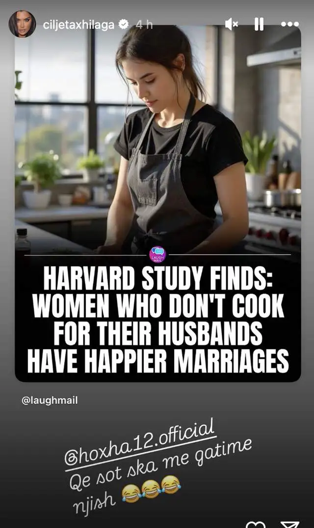 Me këtë postim gazmor, Çiljeta nuk harroi as partnerin e saj, portierin e njohur të Partizanit dhe Kombëtares, Alban Hoxha, të cilit iu drejtua me një shaka që shkaktoi edhe më shumë të qeshura: