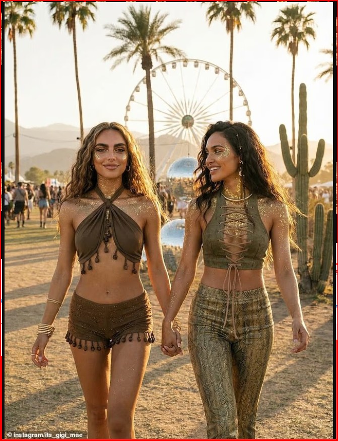 “COACHELLA. EDICION BESTIE. Ditë perfekte me ty,” shkruante llogaria @its_gigi_mae në një postim ku shfaqej me një “shoqe” të krijuar nga AI mes turmës së festivalit.