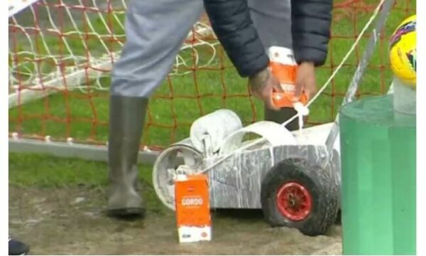Në mungesë të bojës, punonjësit e ekipit vendas përdorën qumësht. Po, është e vërtetë. Edhe vija mes shtyllave u lye me qumësht, por vendasit si duket nuk e kishin forcën e duhur për të shënuar të paktën një gol.