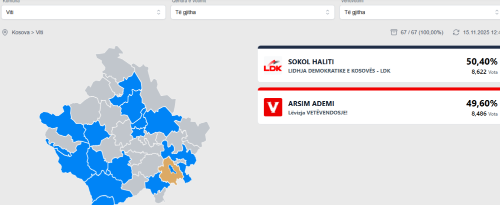 Sokol Haliti sipas faqes së KQZ-së ka gjithsejtë 8,622 Vota derisa Arsim Ademi 8486.