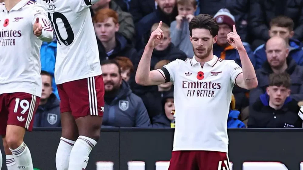 Rice shënoi golin e dytë të Arsenalit në fitoren 2-0 në “Turf Moor” në minutën e 35-të.