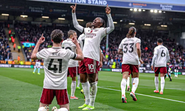 Rice shënoi golin e dytë të Arsenalit në fitoren 2-0 në “Turf Moor” në minutën e 35-të.