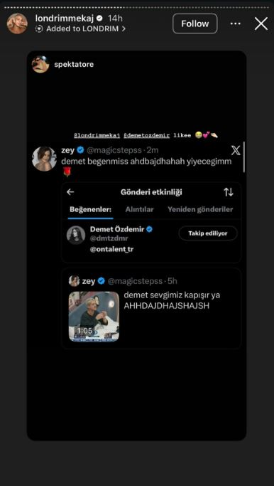 Pikërisht për shkak të përmasave të mëdha që mori kjo video, Londrimi ka rënë në ‘radarin’ e aktores turke, e cila ka pëlqyer një postim të shpërndarë në X, transmeton Klankosova.tv.