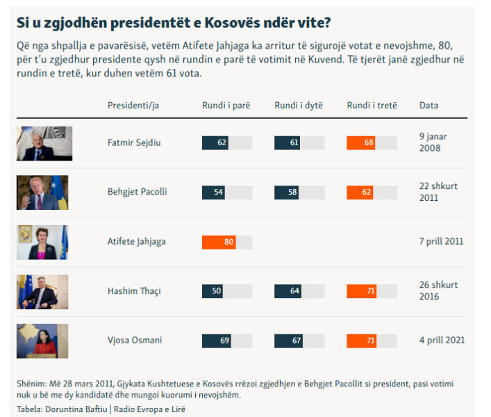 Më 5 prill, Osmani nuk do të ishte më presidente, ndërsa postin e saj do ta ushtronte kryetarja e Kuvendit, Haxhiu, jo më gjatë se 6 muaj, siç e parasheh Kushtetuta.
