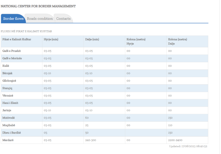 Kjo është bërë e ditur në përditësimin e fundit të Qendrës Kombëtare të Menaxhimit i cili u bë rreth orës 08:40.