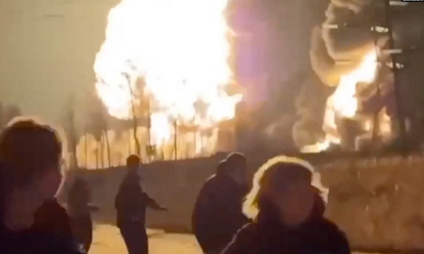 Një video, e postuar në Telegram, shfaq zjarrin e madh dhe njerëzit duke bërtitur dhe duke ikur nga një zonë industriale e përfshirë nga flakët.