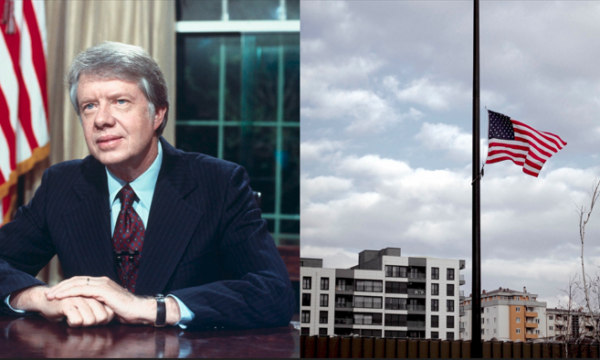 Flamuri i Shteteve të Bashkuara të Amerikës u ul në gjysmështizë sot për Ditën e Zisë Kombëtare për ta nderuar Presidentin e 39-të të Shteteve të Bashkuara të Amerikës, James Earl Carter Jr.