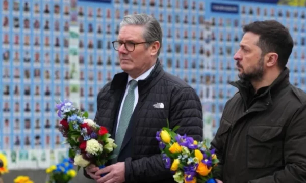 Dy dronë po fluturonin pranë oborrit presidencial ukrainas kur në vizitë shkoi kryeministri britanik, Keir Starmer. Ai u prit nga presidenti i Ukrainës, Voloymyr Zelensky, derisa në të njëjtën kohë dëgjoheshin alarmet ajrore që paralajmëronin sulme të mundshme nga ushtria ruse.