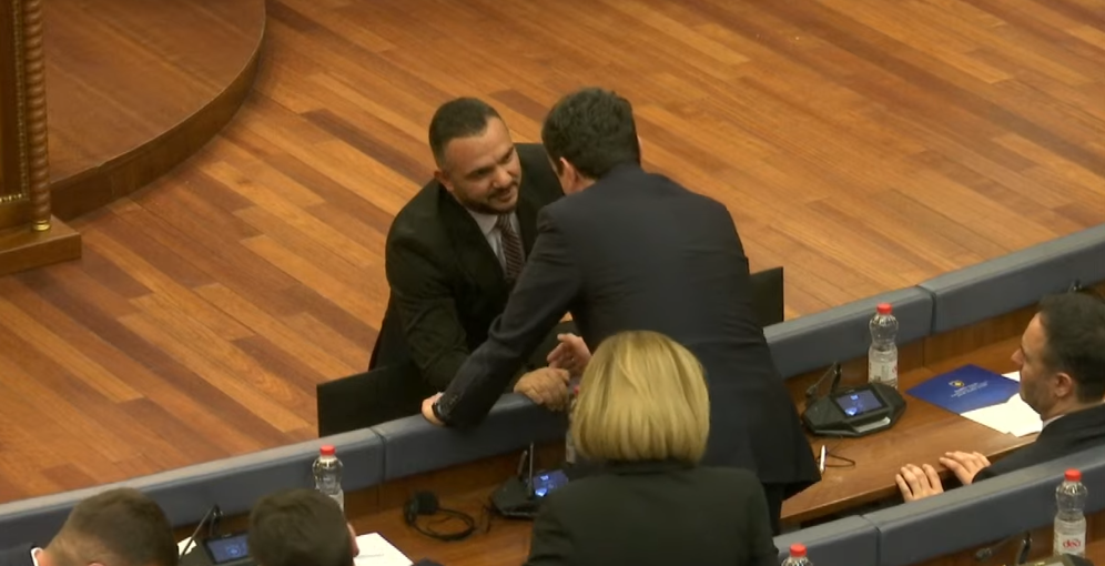 Gjatë kohës kur komisioni i përkohshëm për verifikimin e mandateve po merrej me punën e parë sipas rendit të ditës në seancën konstituive të Kuvendit, dy deputetë të zgjedhur minoritarë u afruan te kryeministri në detyrë, Albin Kurti, duke u përshëndetur dhe shkëmbyer disa fjalë me të.