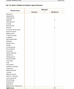 Sipas statistikave, rastet e vetme të evidentuara për muajin shkurt janë raportuar në komunat e Gjilanit dhe Klinës, me nga një rast secila, ndërsa komunat e tjera nuk kanë raportuar raste të tilla.