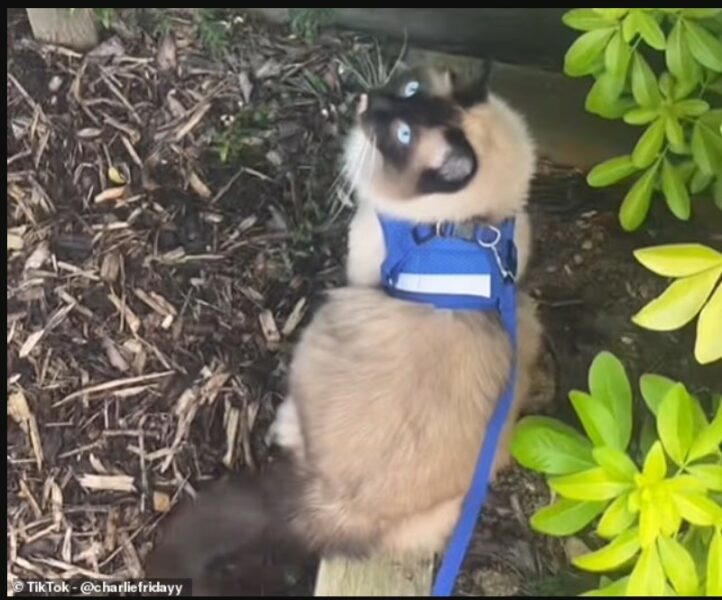 Një tjetër postoi një video të maces së saj që zvarritej në tokë, me mbishkrimin: “Ia blemë një parzmore dhe e morëm për një shëtitje zvarritjeje.”