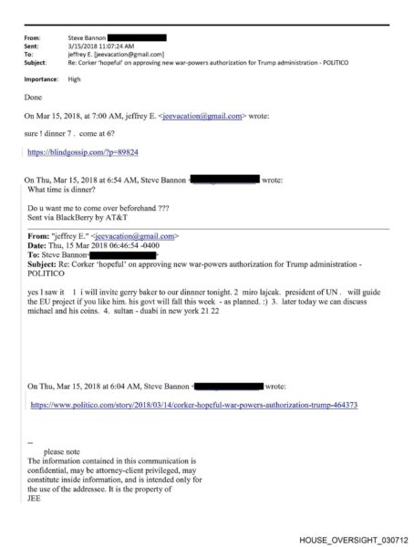 Emri i diplomat-it sllovak shfaqet edhe në një email që Steve Bannon i dërgoi Epstein-it në vitin 2018.
