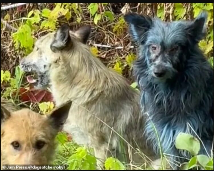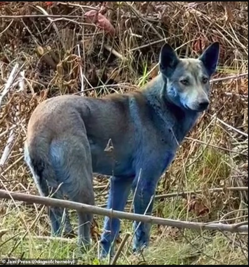 The organization Dogs of Chernobyl, which cares for about 700 dogs living in the 18-mile exclusion zone, shared a video showing several packs of dogs, at least one of which is completely blue.