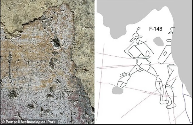 Përveç shkrimeve, arkeologët zbuluan edhe vizatime – nga doodle të thjeshta deri te ilustrime shumë të detajuara. Një prej tyre paraqet dy gladiatorë në duel, me armë, mburoja dhe parzmore të vizatuara me saktësi të habitshme. Sipas studiuesve, pozat sugjerojnë se autori mund të ketë qenë dëshmitar i një lufte gladiatorësh.