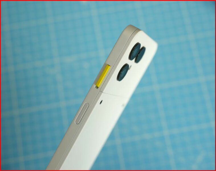 Paneli prapa mbahet me dy vida Torx dhe fsheh baterinë dhe komponentët modulare, të cilët mund të zëvendësohen lehtësisht në shtëpi. Butoni i ndezjes shërben edhe si skaner shenjash gishtash, por pozicionimi i tij bashkë me butonat e volumit bën të lehta shtypjet aksidentale. Një buton i madh ngjyrash aktivizon modalitetin “Moments” që bllokon njoftimet dhe shfaq vetëm aplikacionet thelbësore, duke reduktuar shpërqendrimet.
