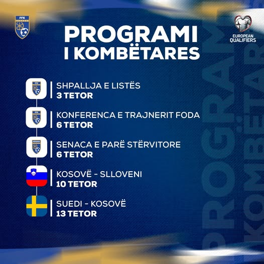 Federata e Futbollit e Kosovës ka bërë publik programin e Kombëtares për muajin tetor, ku “Dardanët” do të zhvillojnë dy ndeshje mjaft të rëndësishme në kuadër të kualifikimeve për Kampionatin Botëror.